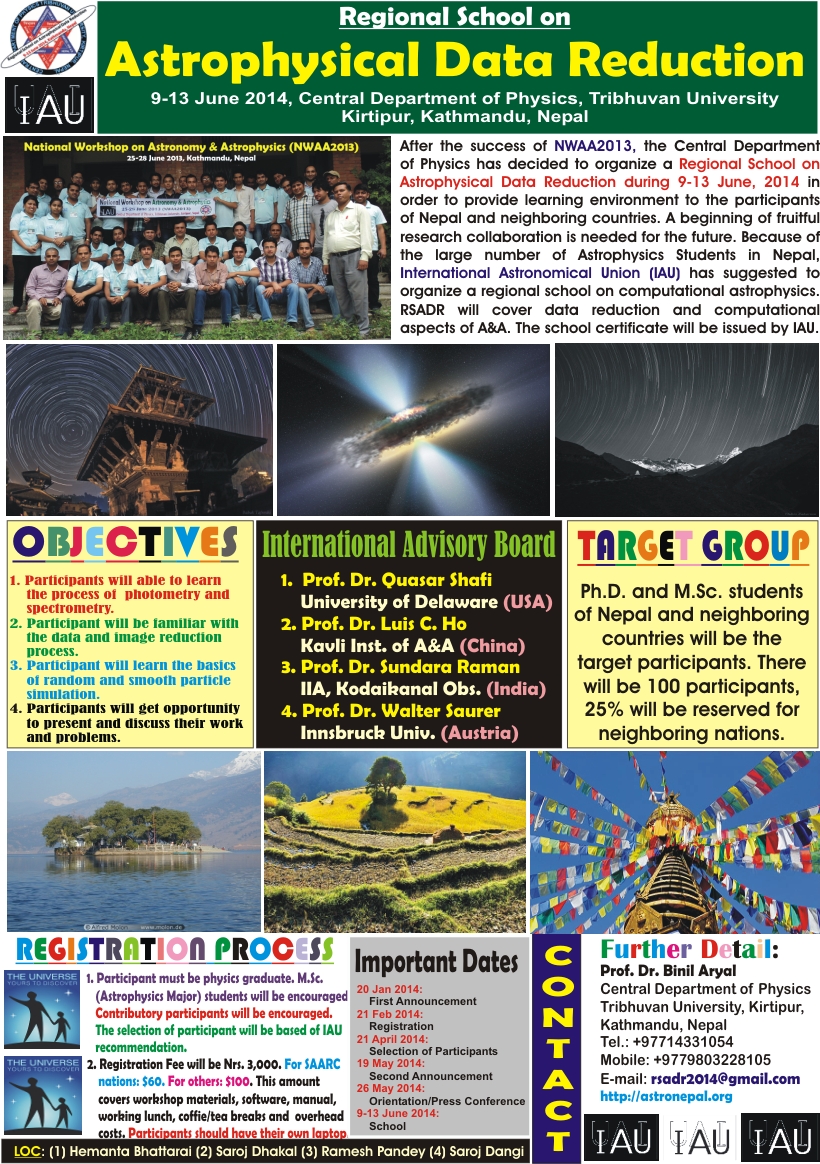 2014, Central and South Asia, Regional School on Astrophysical Data Reduction, Nepal, TF1 funded projects