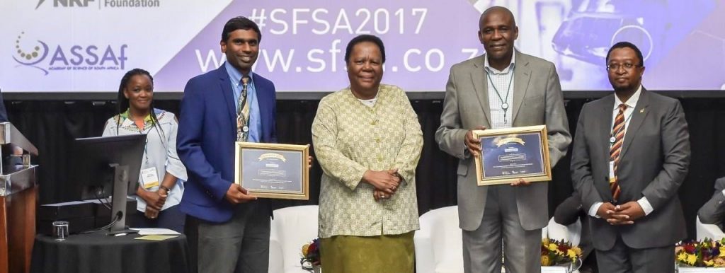 At the Science Forum South Africa 2017, the Honourable Minister of Science and Technology, Naledi Pandor, presented awards of recognition to Phil Charles, Patricia Whitelock, Khotso Mokhele, and Kevin Govender, for their contributions in South Africa being selected as the host of the IAU Office of Astronomy for Development.
