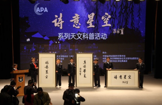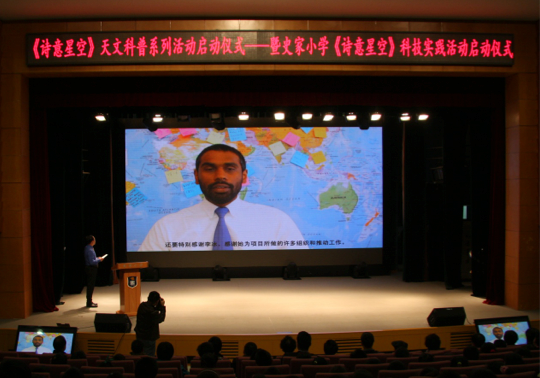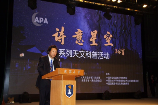 2013年10月21日上午,“诗意星空”系列天文科普活动启动仪式在史家小学举行,北京天文馆馆长朱进等领导及众多科技、艺术、文化界的代表出席该仪式。北京天文馆馆长朱进代表主办单位首先发言,鼓励大家参与诗意星空天文摄影大赛。